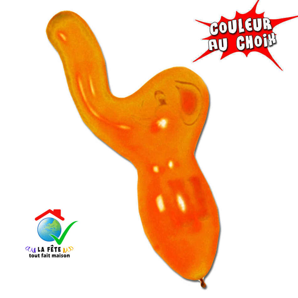 Ballon forme éléphant, couleur au choix, prix unitaire, conditionnement vrac. À gonfler de préférence avec une pompe (non fournie) sinon à la bouche. 100% latex naturel = 100% biodégradable ! On peut ainsi faire un lâcher de ballons sans risque de polluer.