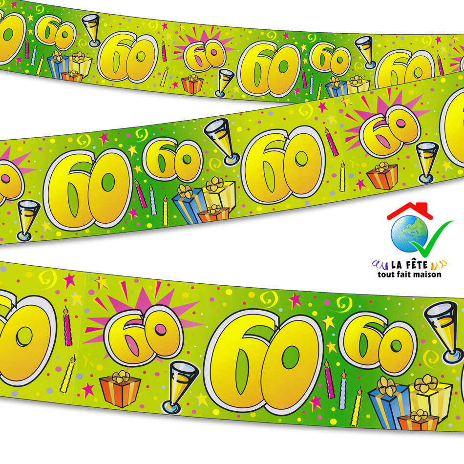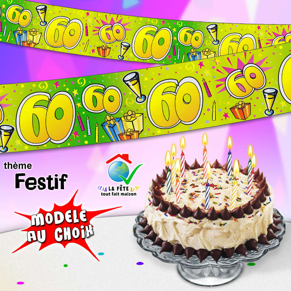 bannière anniversaire 60 ans soixante ans la soixantaine soixantenaire pancarte décoration festive enseigne banderole flamme blason étendard fête festivités bringue célébration affiche écriteau panneau panonceau accueil surprise entrée arrivée amis invités