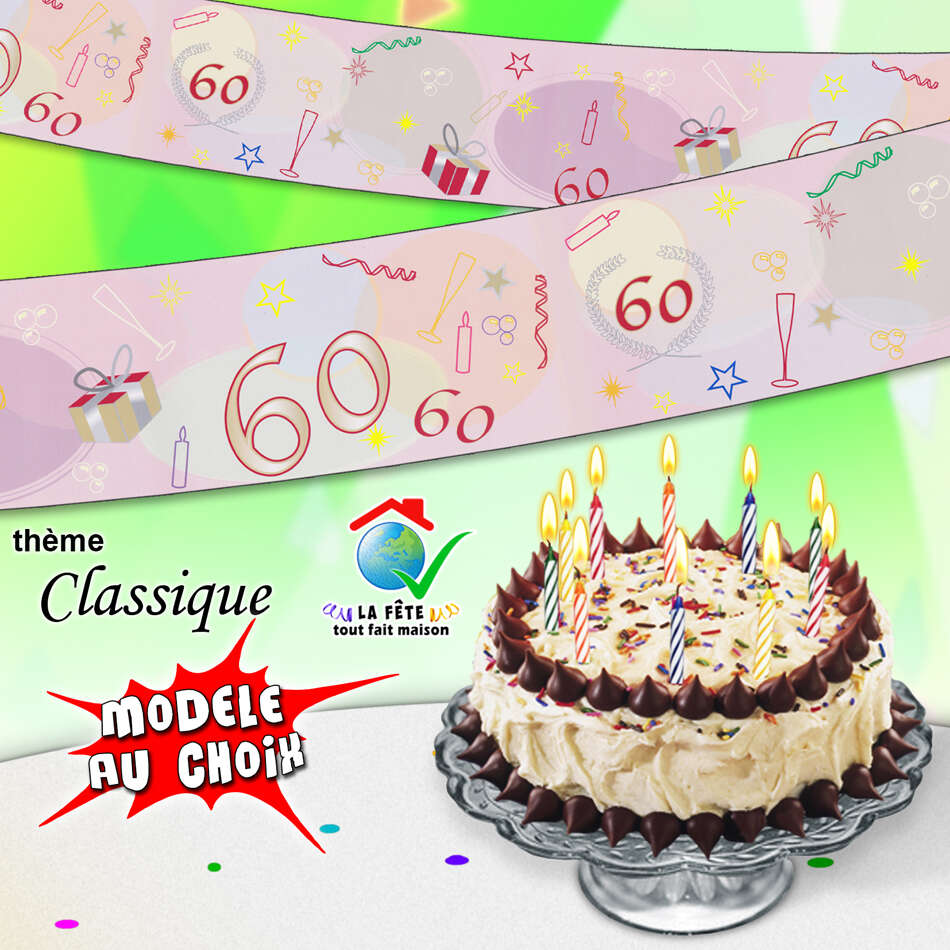 Bannière couleur anniversaire pour les 60 ans, festive et joviale, elle sera du plus bel effet, à fixer à l’aide de punaises. Modèle au choix : thème « classique » plus sobre ou thème « festif » plus coloré, (matière carton glacé, hauteur 16 cm, longueur 2,44 mètres, imprimée sur une seule face, prix unitaire).
