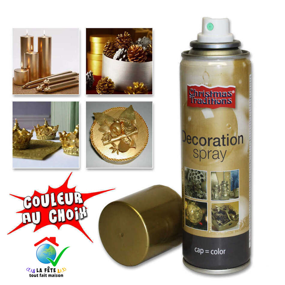 bombe de peinture or argent peindre doré dorures objets décorations décors de noël décoratif mariage couleur métallisée brillant pomme de pin ange sapin table éléments spray pas cher discount économique