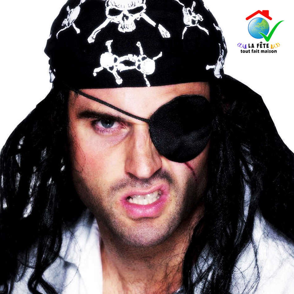 cache-oeil de pirate corsaire borgne satin noir accessoire de déguisement tête de mort pirates des caraïbes jack sparrow masquer oeil poche bandit flibustier piraterie bateau voilier haute mer