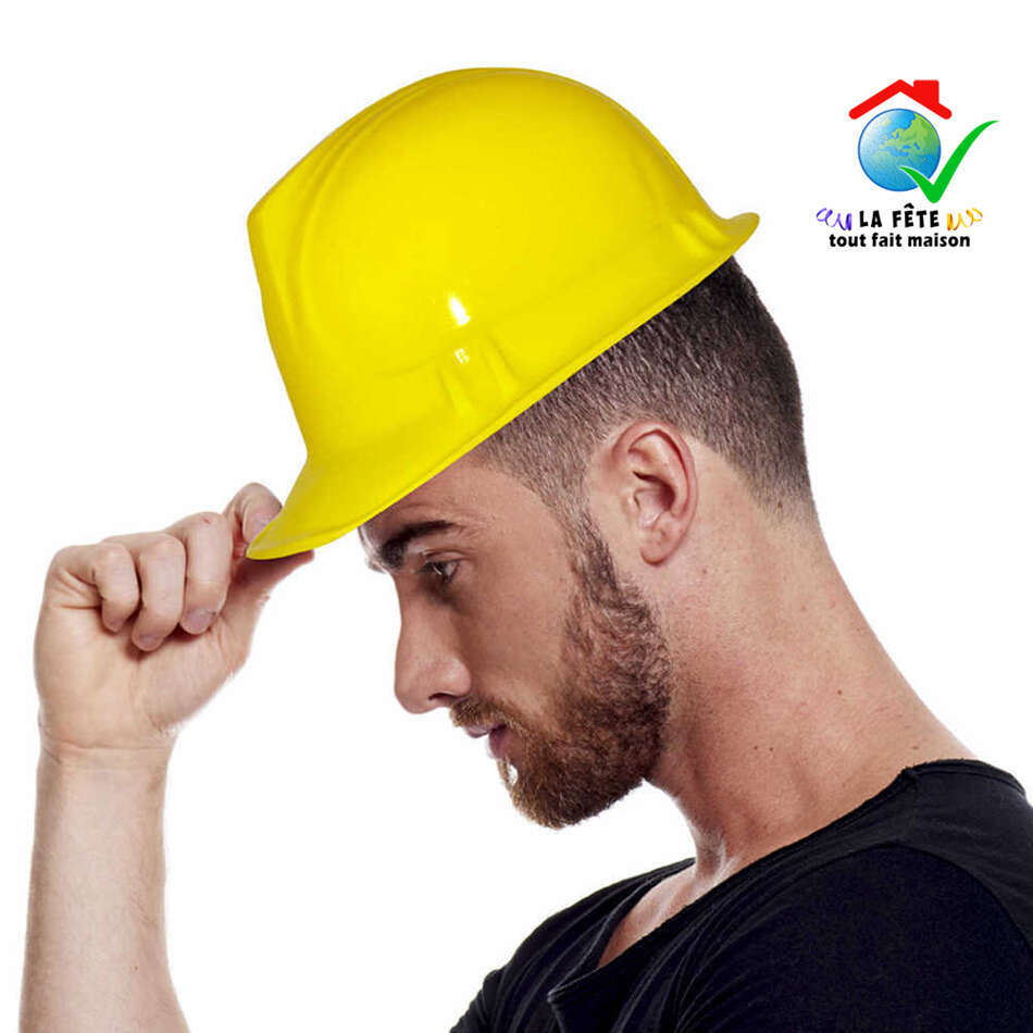 Faux casque de chantier factice sécurité protection tête accessoire de déguisement maçon plâtrier village people bâtiment travaux publics btp construction génie civil industrie couvre-chef chapeau fête fiesta nouba amuser théâtre comédie