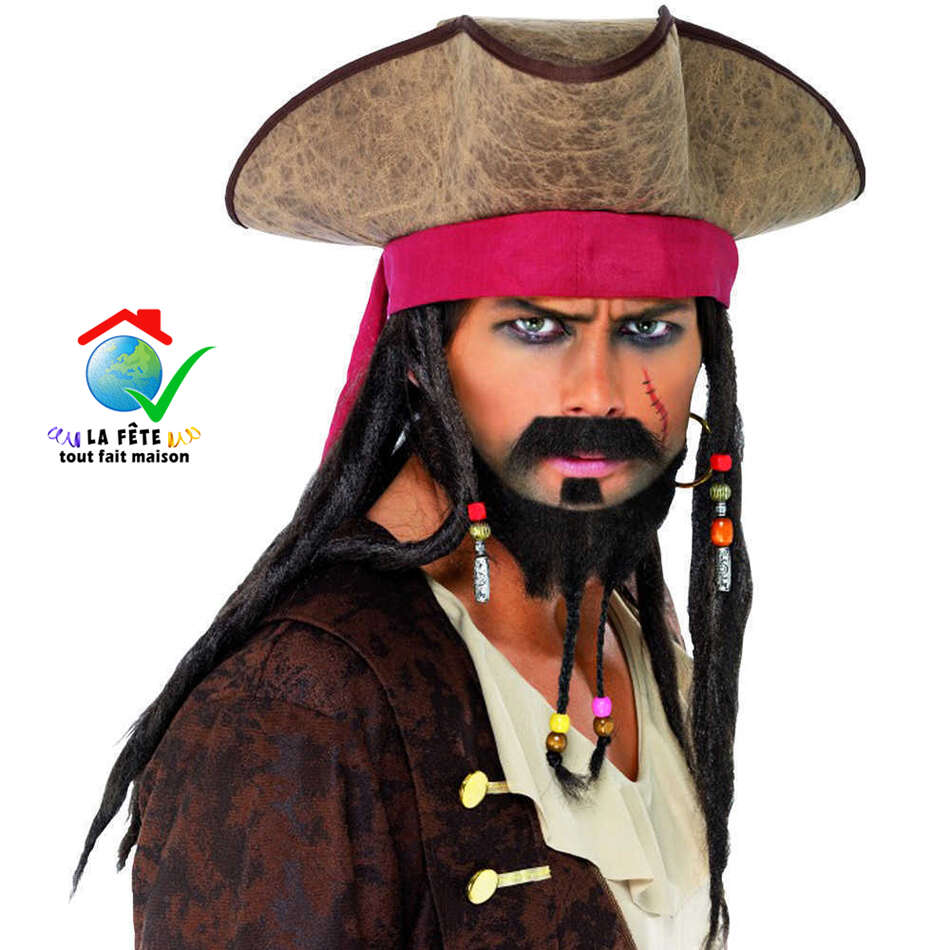 coiffe chapeau tricorne perruque dreadlocks perles pirates des caraïbes corsaire jack sparrow black pearl couvre-chef flibustier boucanier écumeur marin matelot postiche moussaillon accessoire de déguisement comédie théâtre personnage costume