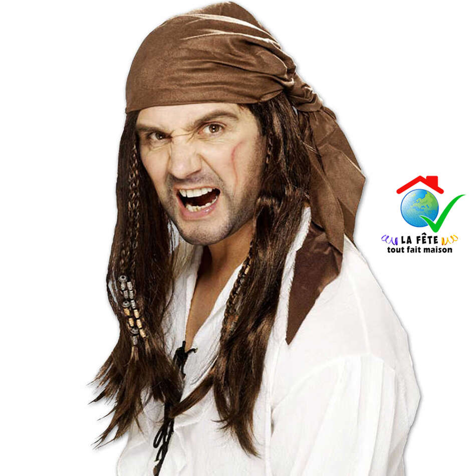 coiffe bandana tissu perruque à perles de pirates des caraïbes corsaire jack sparrow black pearl couvre-chef flibustier boucanier écumeur marin matelot postiche moussaillon accessoire de déguisement personnage