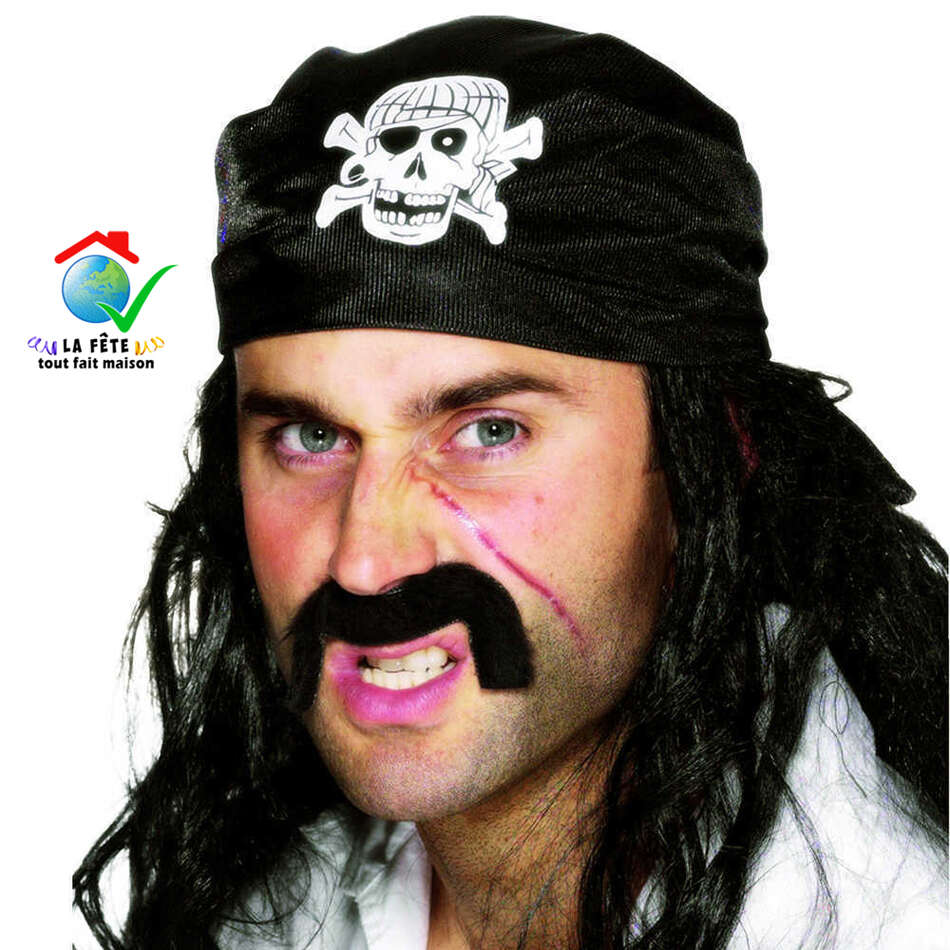 chapeau calot couvre-chef bandana de pirate tête de mort foulard bandeau madras carré de tissu noir et blanc corsaire flibustier jack sparrow capitaine crochet bandit squelette accessoire de déguisement