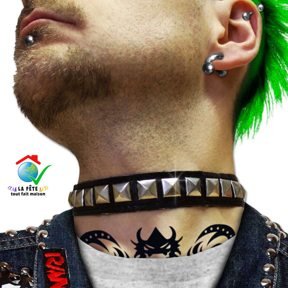 collier cuir clous studs pointes métalliques carrés punk rockeur emo gothique look style mode accessoire déguisement studded choker noir rebelle dur à cuire bijou de tour de cou