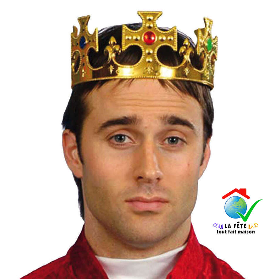 couronne de roi or dorée dorures pierres incrustées bijoux diadème accessoire de déguisement déguiser royauté royaume prince charmant monarchie sa majesté château châtelain ornement monarque médiéval souverain rubis saphir