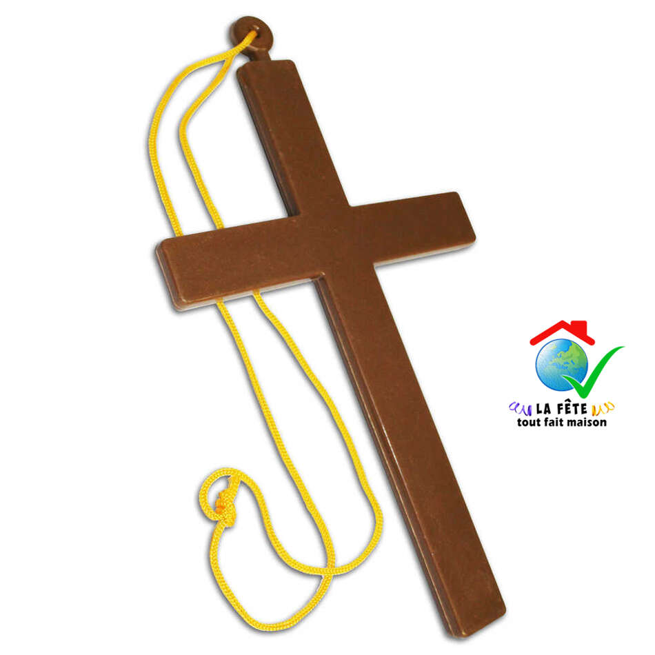fausse croix de l’exorciste crucifix factice christ bois plastique curé prêtre bonne soeur moine religion église foi chrétienne accessoire de déguisement se déguiser jésus christ dieu pasteur religieuse nonne catholique théâtre sainte bible gothique