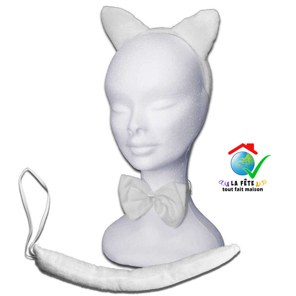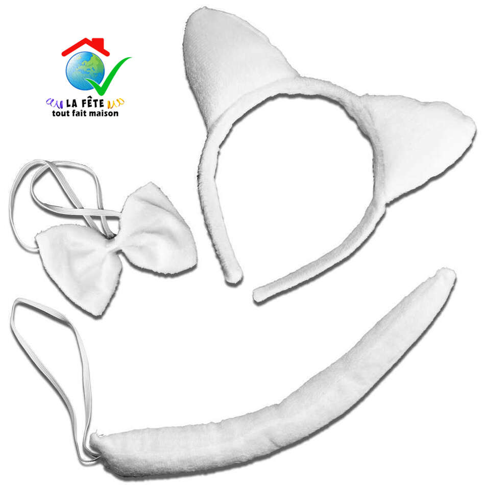 déguisement chatte blanche panoplie oreilles noeud papillon queue velours miaou féline doux poils femme sexy fete soirée serre-tête diadème peluche rongeur museau rat rigolo séduisante charmante érotique sensuelle affriolante aphrodisiaque couple jeux érotiques