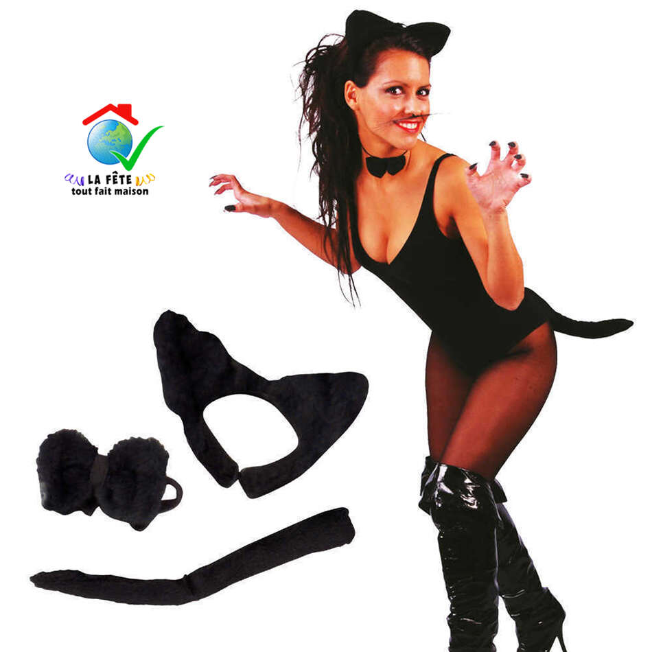 déguisement chatte noire panoplie oreilles noeud papillon queue velours miaou féline doux poils femme sexy fete soirée serre-tête diadème peluche rongeur museau rat rigolo séduisante charmante érotique sensuelle affriolante aphrodisiaque couple jeux érotiques