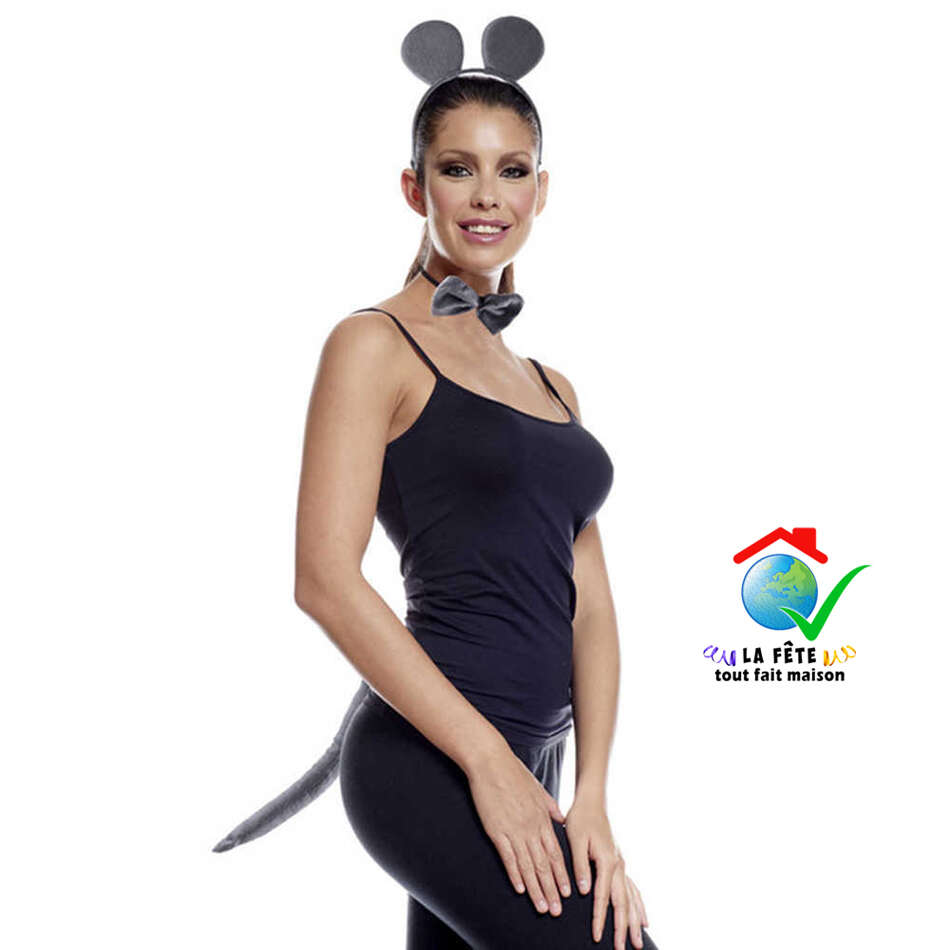 Déguisement souris grise panoplie oreilles noeud papillon queue velours doux poils femme sexy fete soirée serre-tête diadème peluche rongeur museau rat rigolo séduisante charmante érotique sensuelle affriolante aphrodisiaque couple jeux érotiques