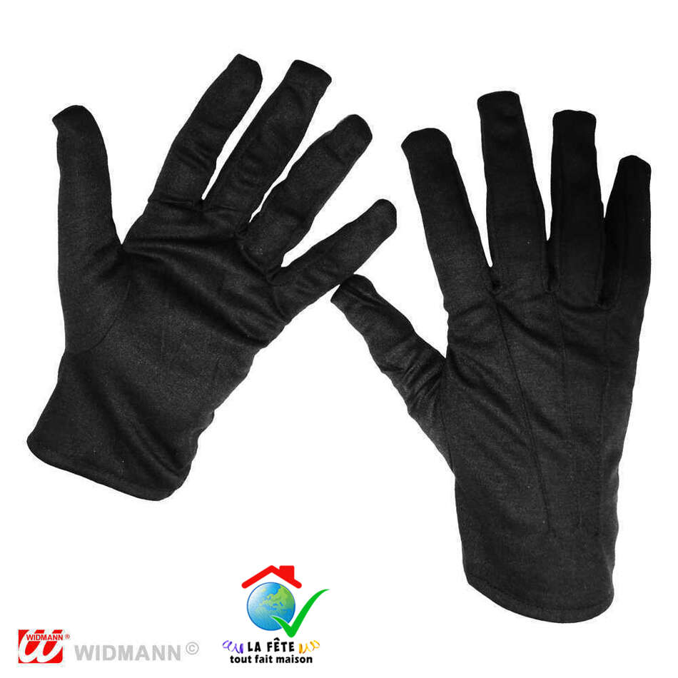 paire de gants noirs pur coton qualité supérieure luxe deluxe magie magicien prestidigitateur clown mime illusionniste assistante spectacle représentation numéro scène élégant distingué galant chic raffiné accessoire de déguisement déguiser bourgeois dandy