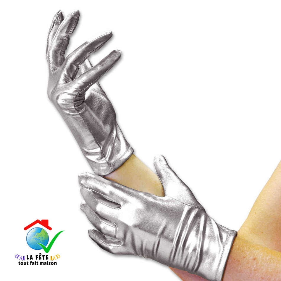 paire de gants argentés luxe brillants élastiques extensibles représentations spectacle magie magicien nol nouvel an prestidigitateur clown mime illusionniste assitante spectacle numéro scène artiste élégant accessoire de déguisement