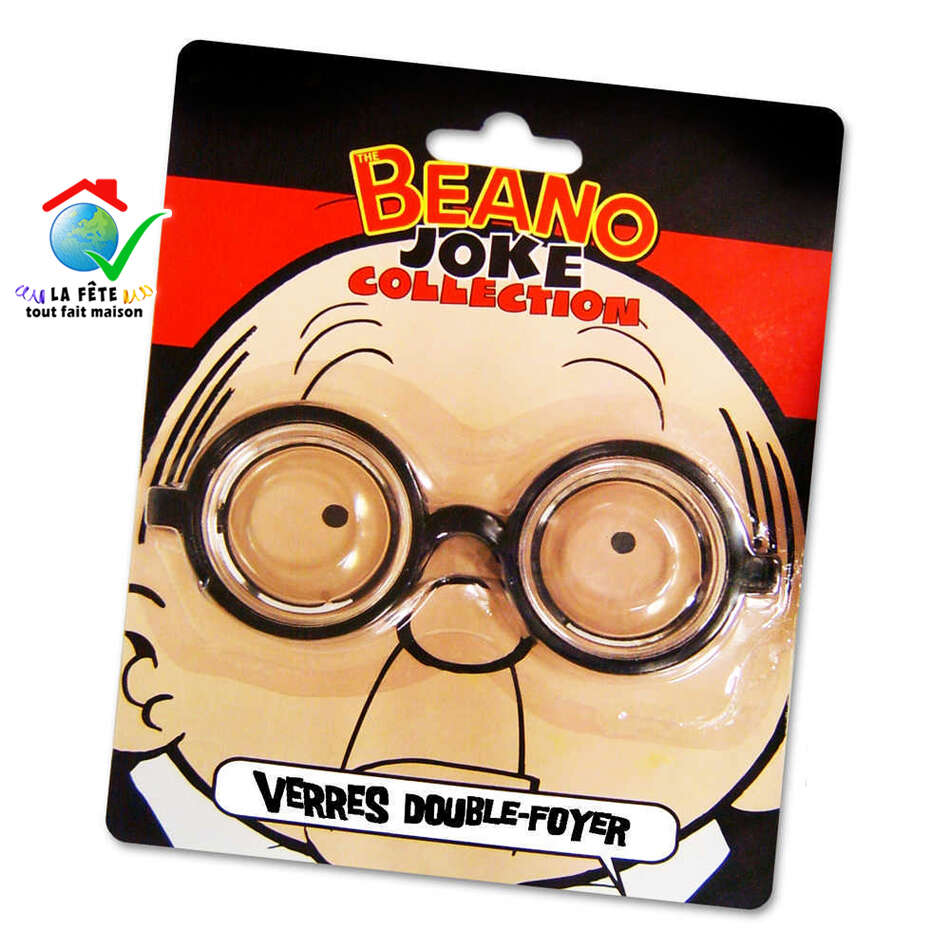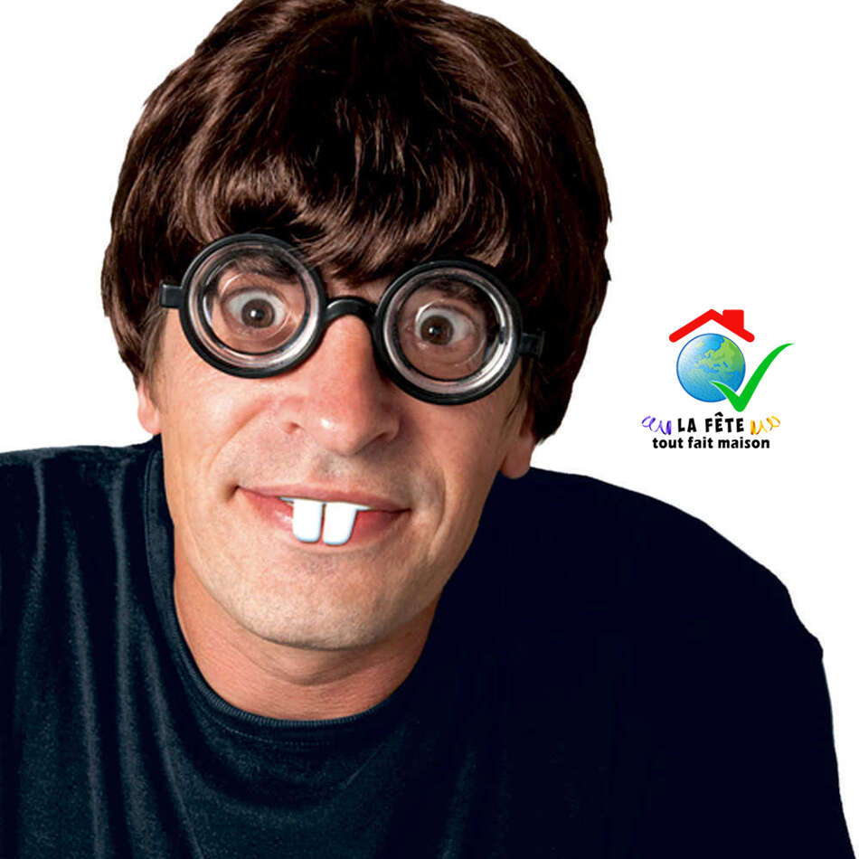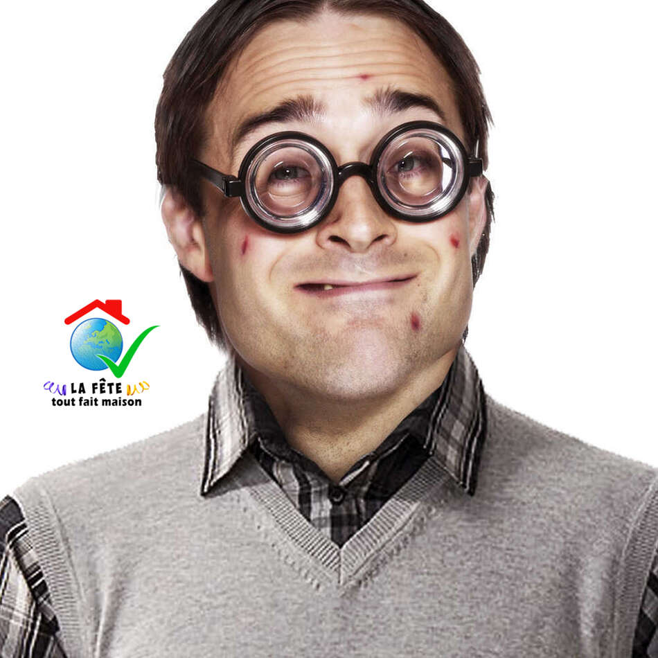 lunettes à double foyer accessoire de déguisement débile benêt culs de bouteille premier de la classe coincé timide faible chétif nigaud andouille ballot bête sot niais imbécile stupide idiot cruche balourd gourde cornichon âne lourdaud maladroit