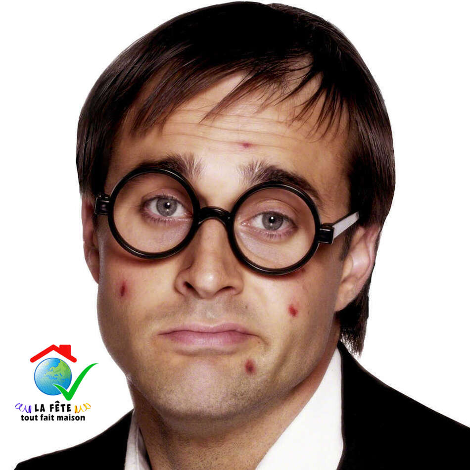 lunettes d’étudiant écolier élève monture noire sans verres intello coincé timide surdoué premier de la classe sérieux autoritaire accessoire de déguisement harry potter à l’école des sorciers scientifique tronche quotient intellectuel théâtre monture plastique binoclard