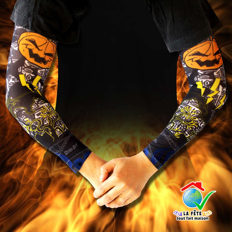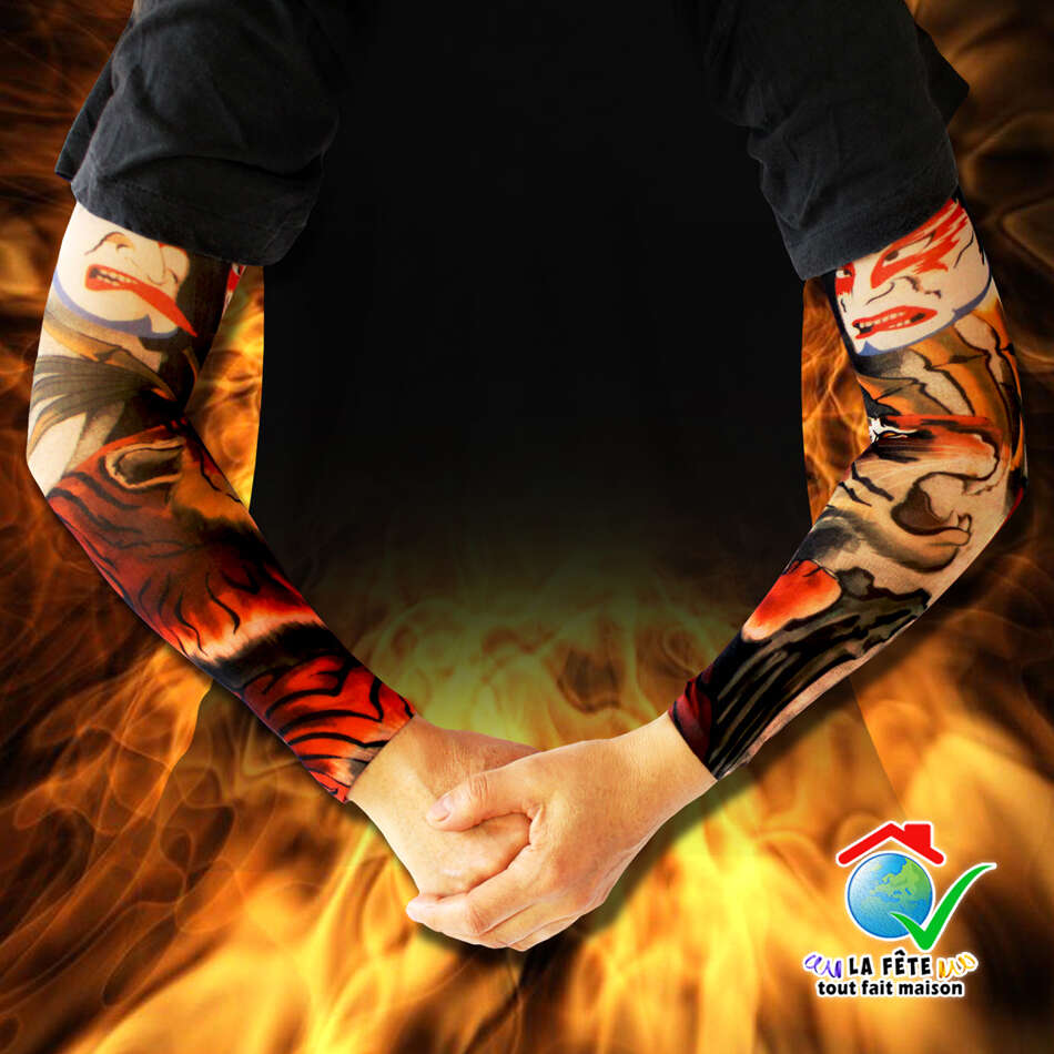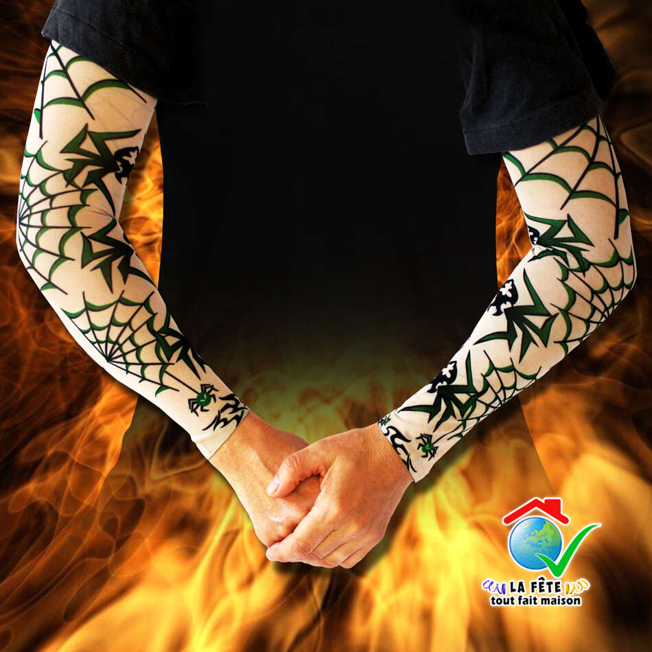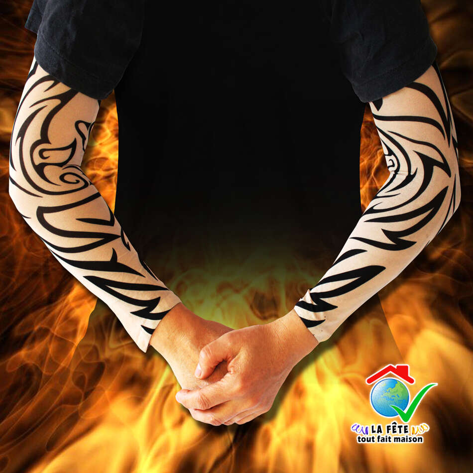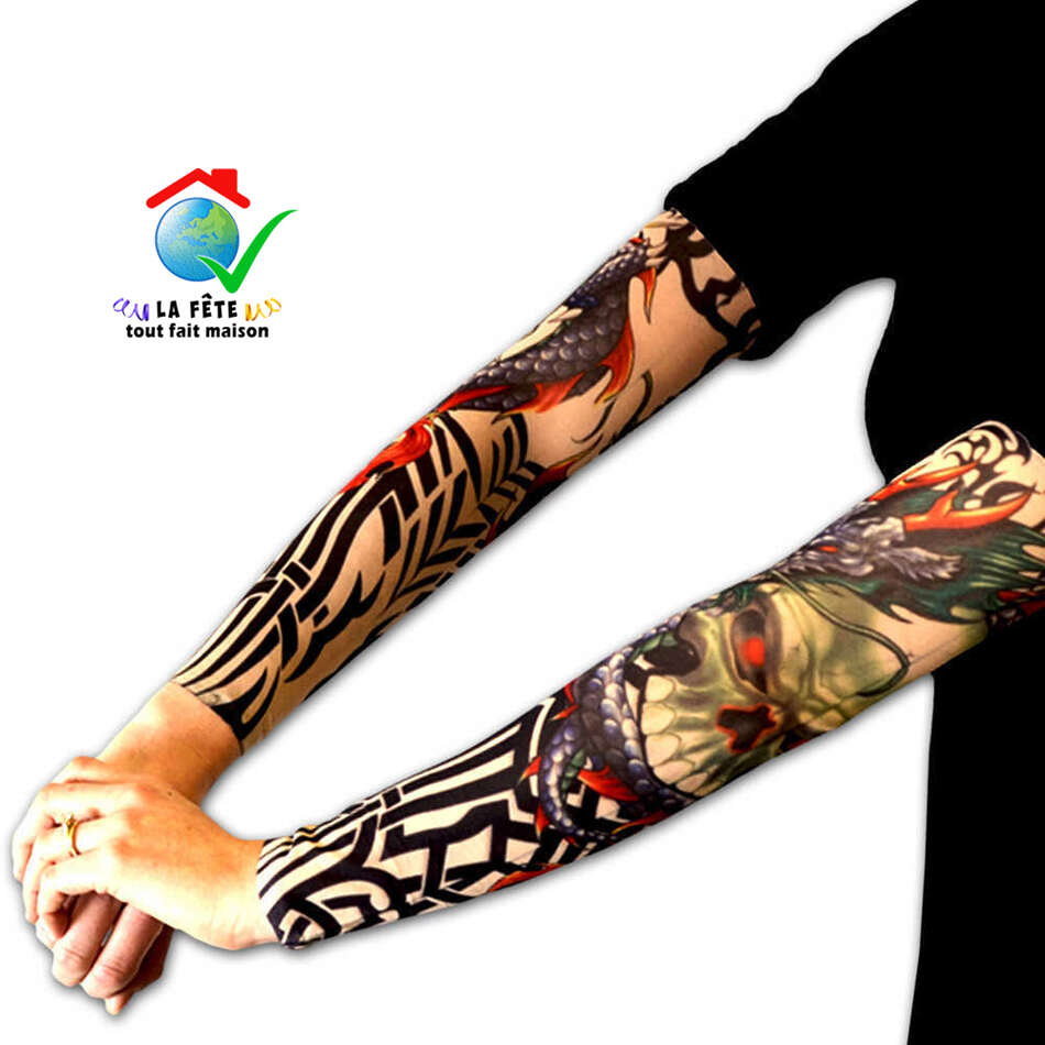 manches tatouages bras avant bras biceps impressionner bras tatoués tattoos tatoos peau manchettes élastique bas nylon gaine dur à cuire rebelle punk simuler illusion sensationnel biker taulard impressionnant accessoire de déguisement