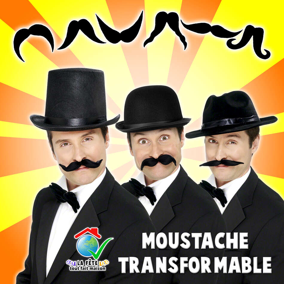 Moustache épaisse transformable à volonté, qualité supérieure, pour usage professionnel et amateur. Se pince sous le nez au moyen d’une rondelle caoutchouc fendue tout à fait confortable.