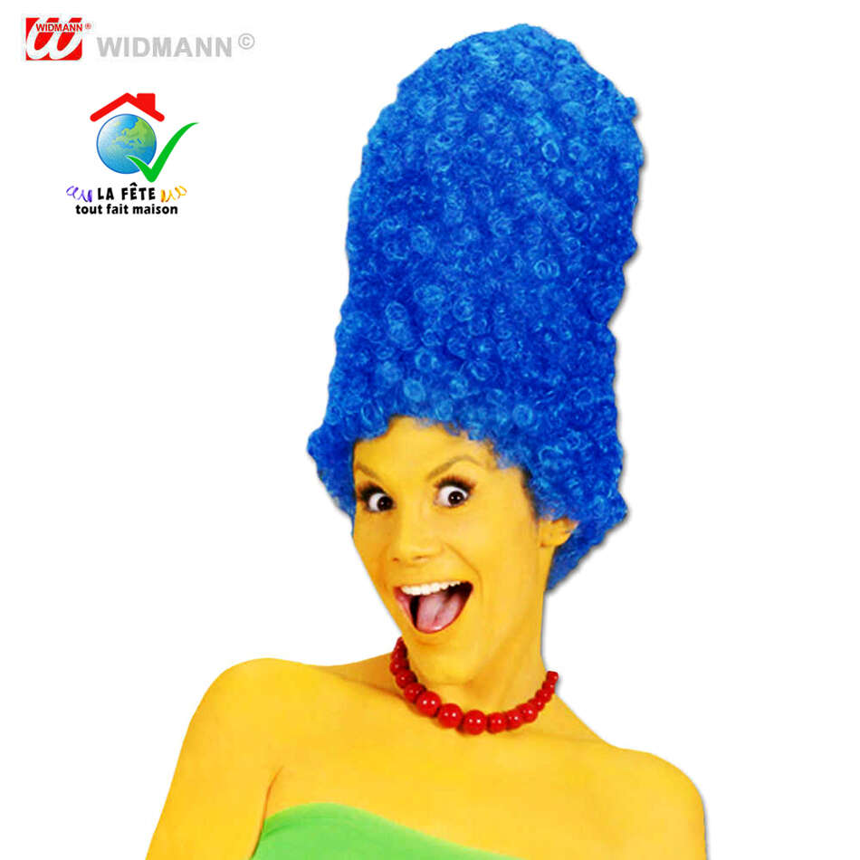 perruque marge simpson déguisement cartoon mère maman cheveux bleus chevelure bleue coiffure postiche tignasse moumoute homer bart lisa maggie voix rauque la célèbre série animée famille américaine jaunes dessin-animé populaire tsuu dhoo chignon haut boucle
