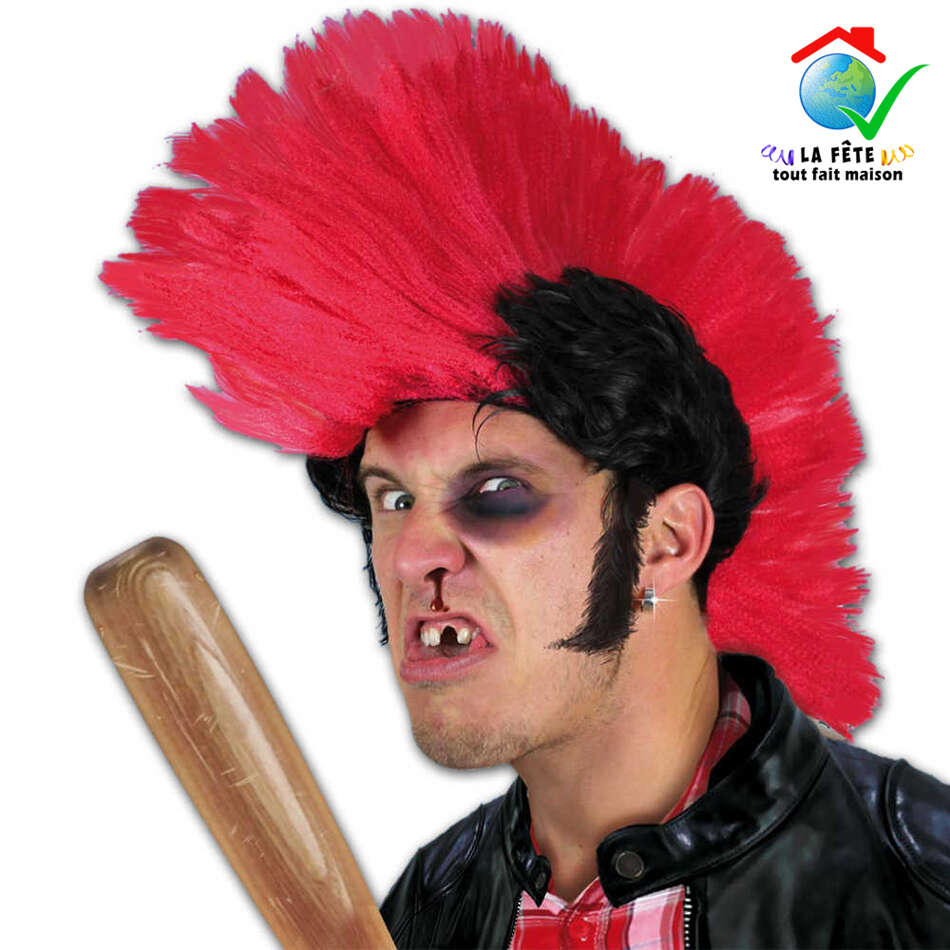 perruque didier l’embrouille punk Antoine de Caunes nulle part ailleurs crête rouge brun iroquoise antisocial chevelure cheveux postiche rebelle anarchie anarchiste revolte rock grunge blouson noir blouson perfecto rangers bombers anti conformisme voyou loubard délinquant batte de baseball