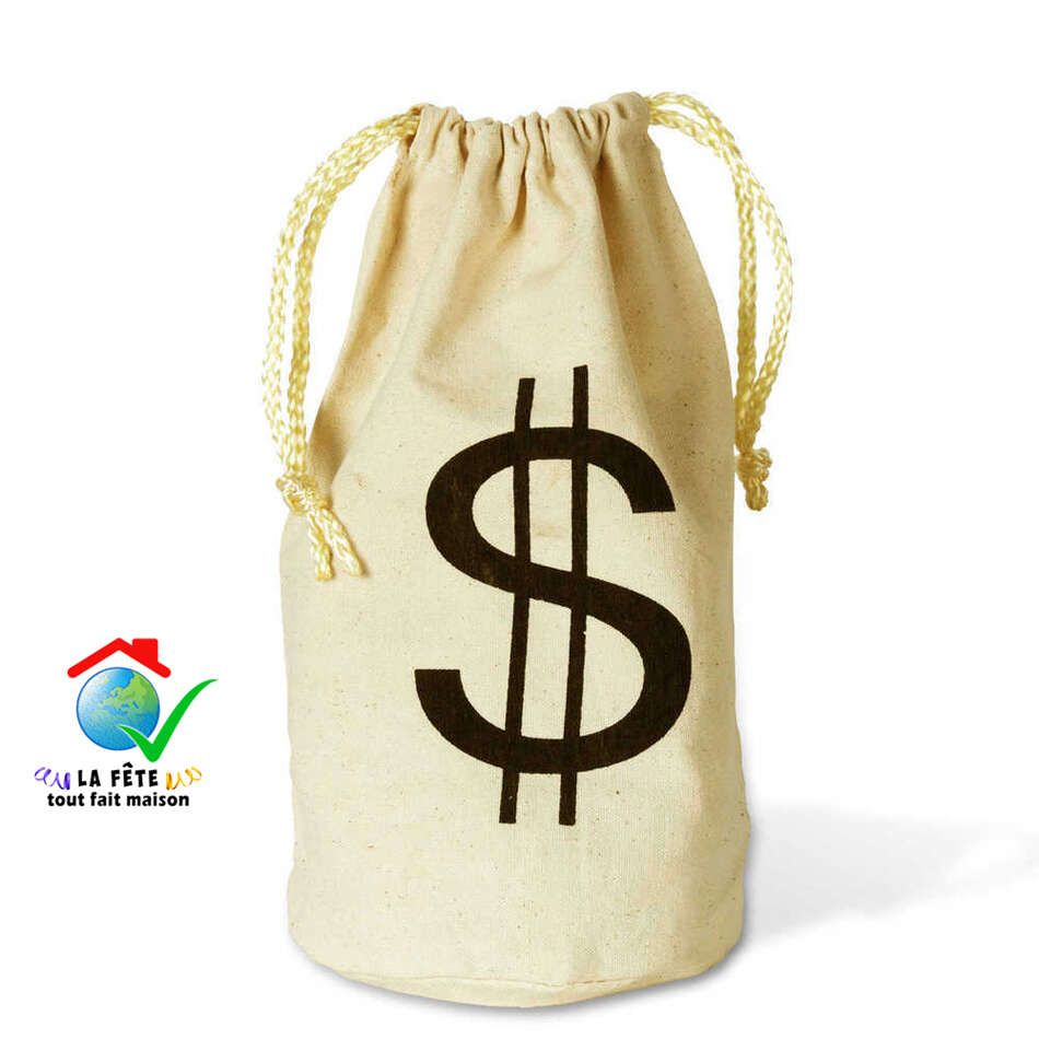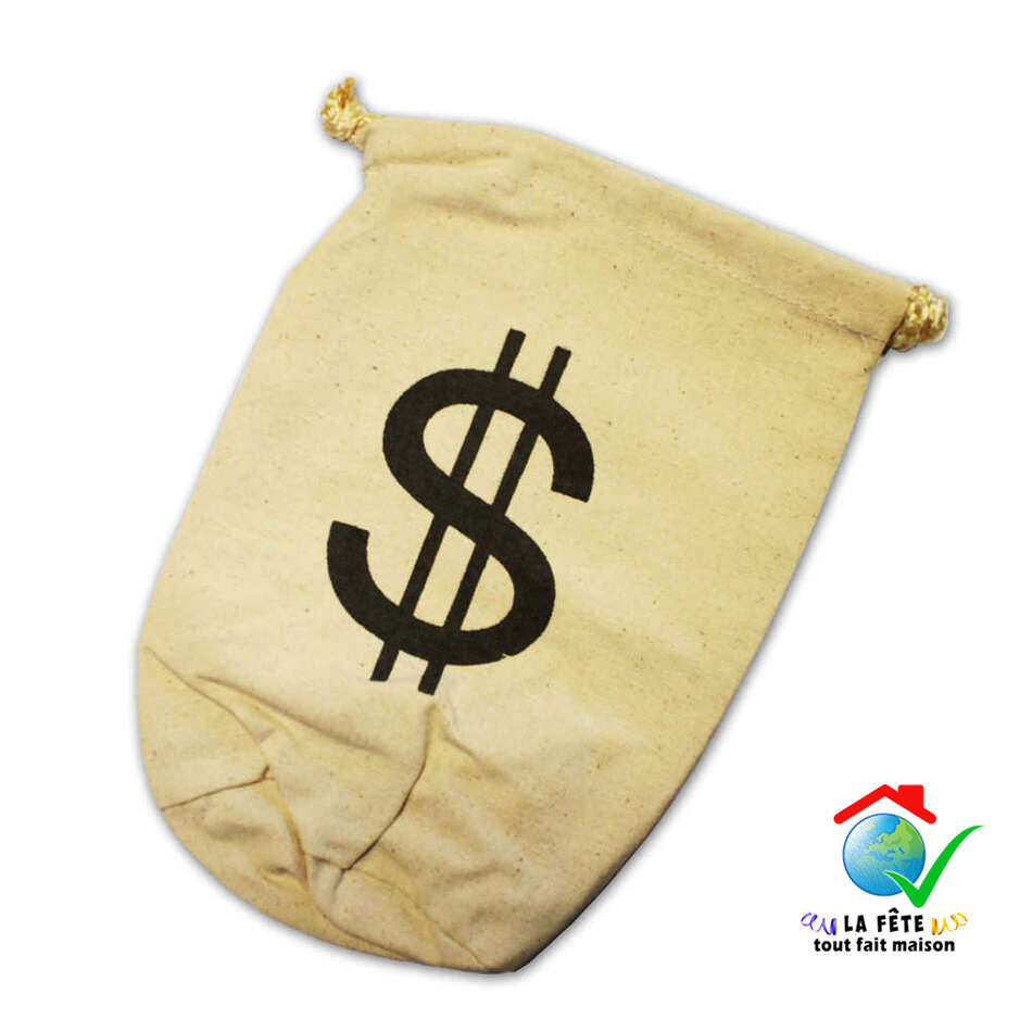 sac de jute dollars bourse sachet sacoche poche argent billets pièces banque fourgon blindé de la brinks boursicot transport de fonds money bag western far west attaque diligence pépites or décoration richesse monnaie biftons pognon gagner au loto