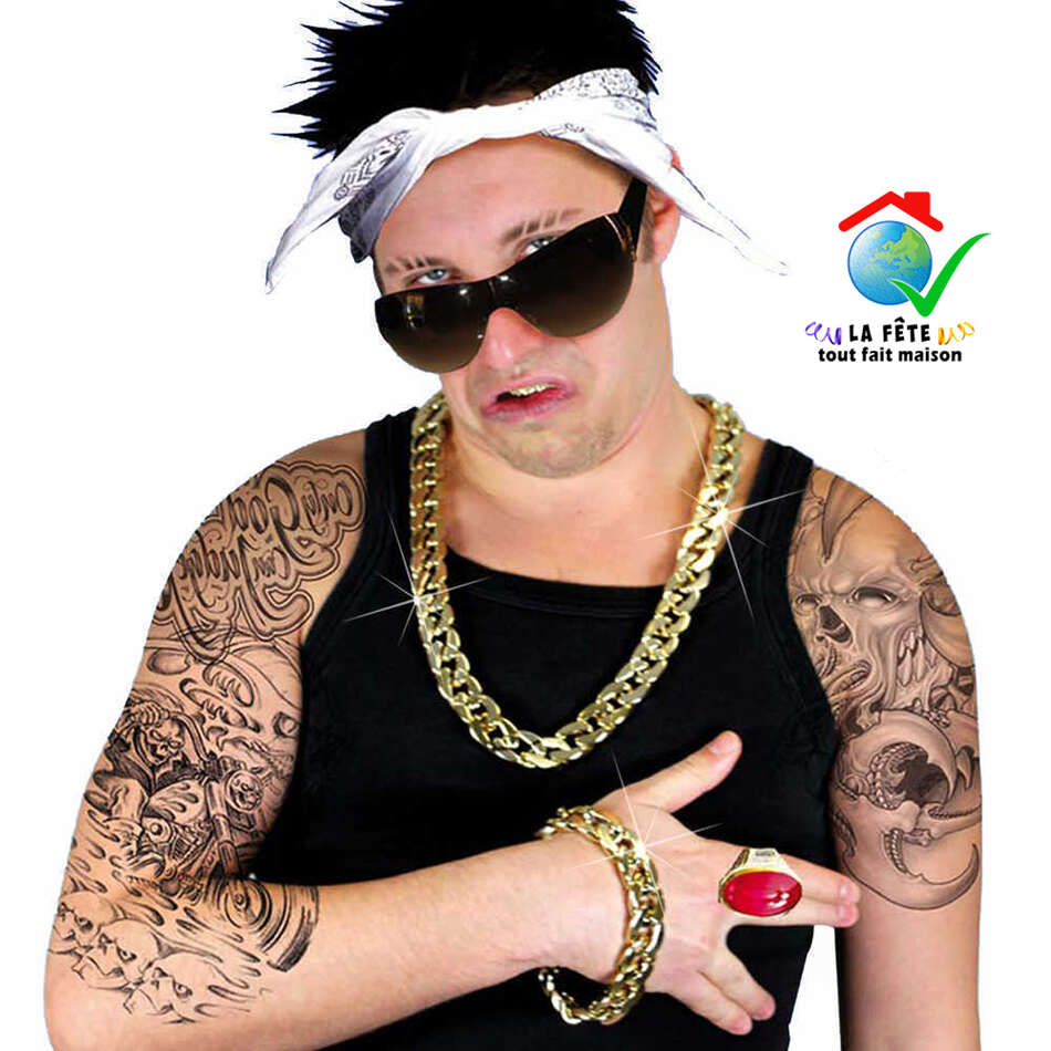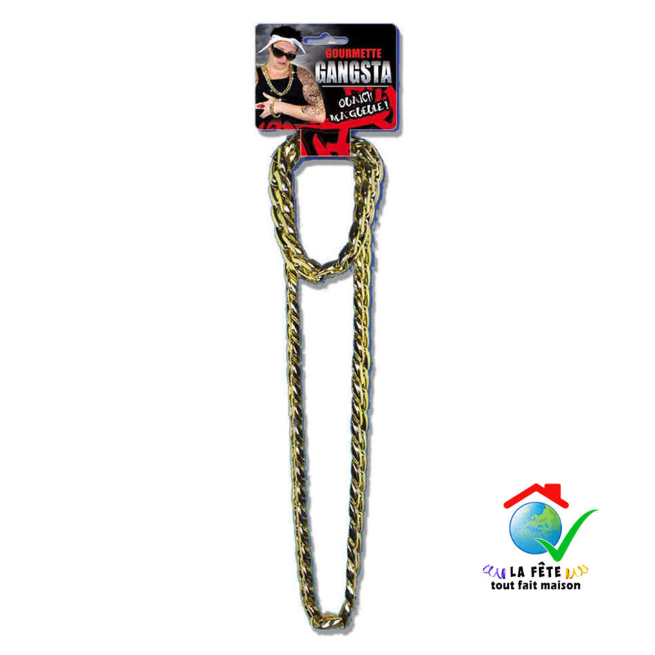 chaine gourmette dorées gangsta bad boy rappeur maillons bijoux pendentif breloques richesse carats énorme brillant briller bling bling accessoire de déguisement vip célèbre milliardaire millionnaire fortune style maquereau ringard Mister T Barracuda L’agence tous risques