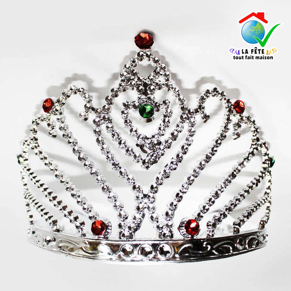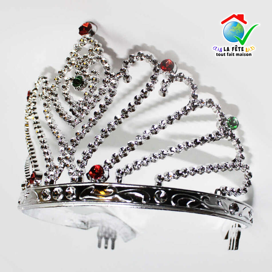 tiare de princesse couronne diadème de miss france reine argentée pierres rubis saphirs bijoux décoration brillante étincelante star coiffure coiffe royauté royaume souveraine ornement accessoire de déguisement récompense lauriers élection enfants prix anniversaire enterrement de vie de jeune fille
